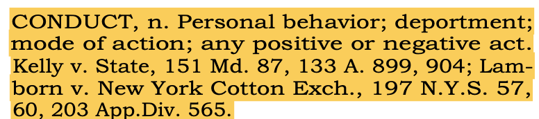 A quick note about conduct. We cannot accept the language that the agents of these abusive government overreach. Black's Law Dictionary defines conduct as: