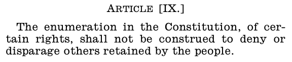 The 9th Amendment. It means you can't use one part of the Constitution to argue in favor of the government curtailing your rights that are secured by another part of the Constitution.