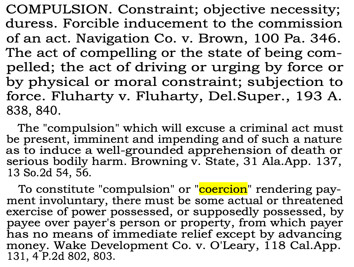 "To constitute "compulsion" or "coercion" rendering payment involuntary, there must be some actual or threatened exercise of power possessed, or supposedly possessed, by payee over payer's person or property, from which payer has no means of immediate relief except by advancing money."