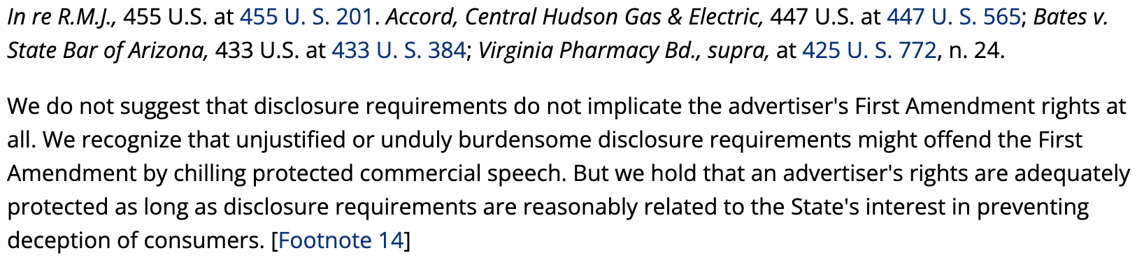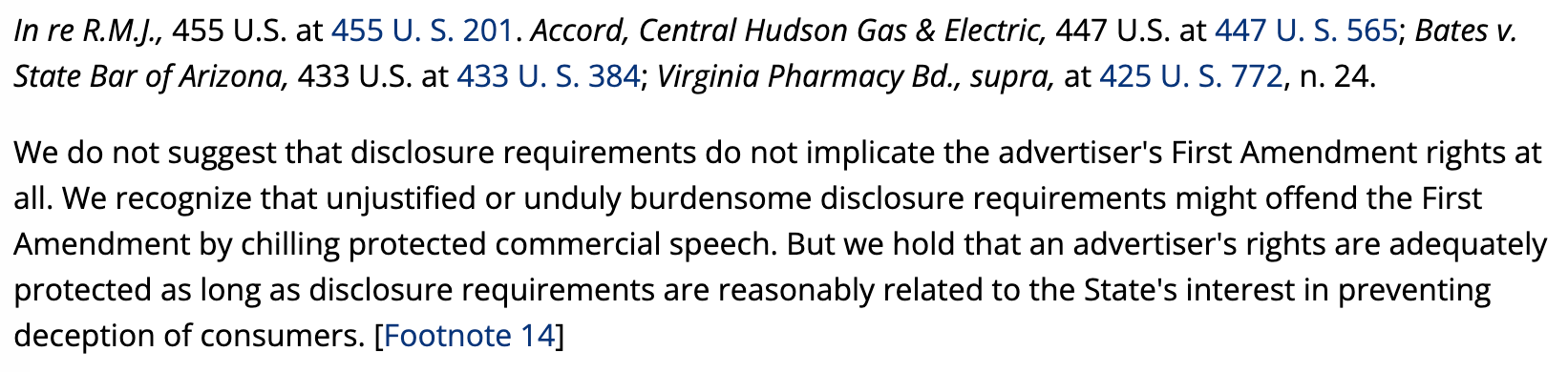 Let's take a look at the Zauderer case: