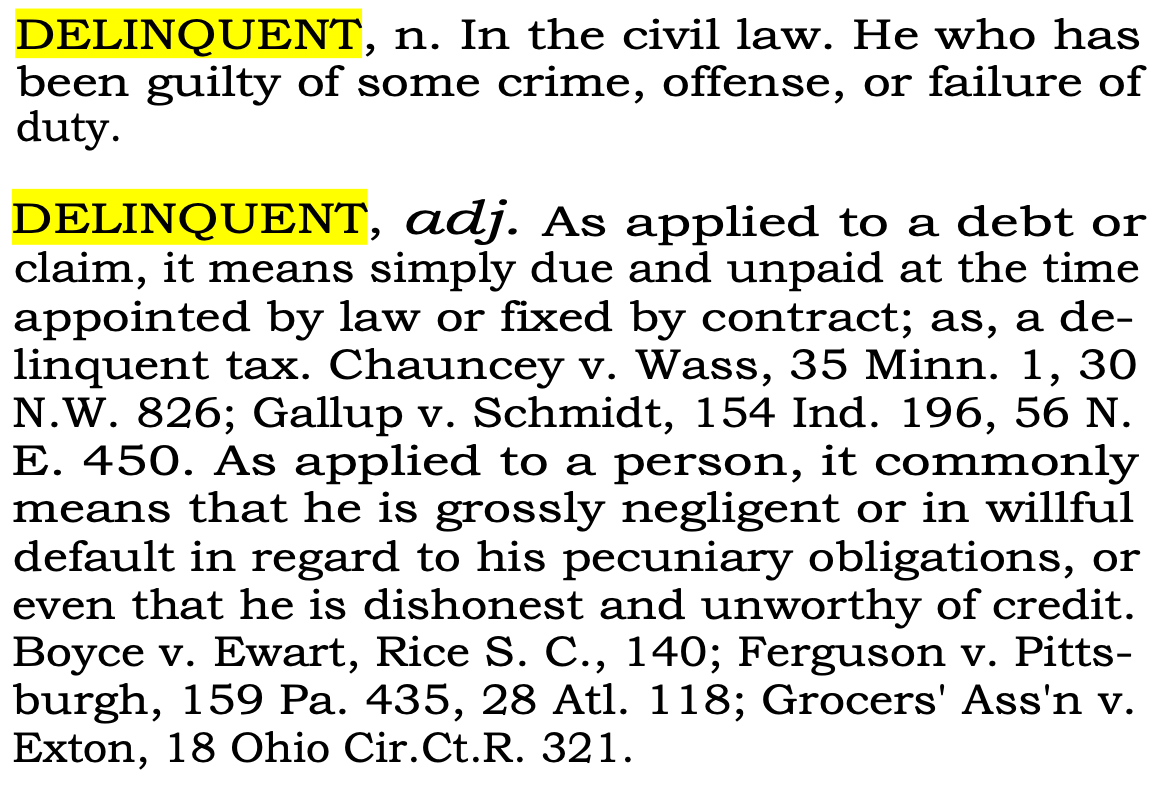 Don't believe me? Let's look at Black's Law Dictionary 4th Ed. for the definition of "delinquent":