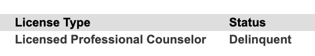 What's worse, if you let that license lapse, Texas BHEC labels it as "delinquent".